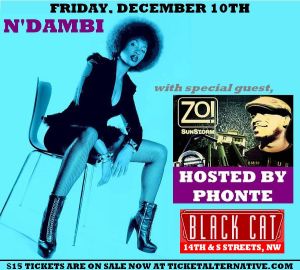 On Friday December 10th, I’ll be presenting my latest release, SunStorm LIVE along with my band, vocalists Kenny Wesley, Deborah Bond, and my brovah from anothah, Phonte. This will take place at the Black Cat in Washington D.C. opening for Dallas-bred vocalist, N’Dambi. I hope to see a lot of you all there as this will be a helluva show…!!