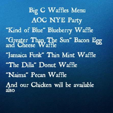 10425166_743546509086642_4109513503317339626_n Published January 8, 2015 at 612 × 612 in Visuals from the Zo! featuring Carmen Rodgers | New Year’s Eve at Hayti Heritage in Durham, NC – (12.31.14) ← Previous Next → Big C Waffles menu for the night…